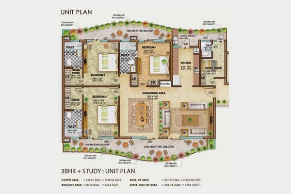 3 BHK - 1598.56 sq.ft.
